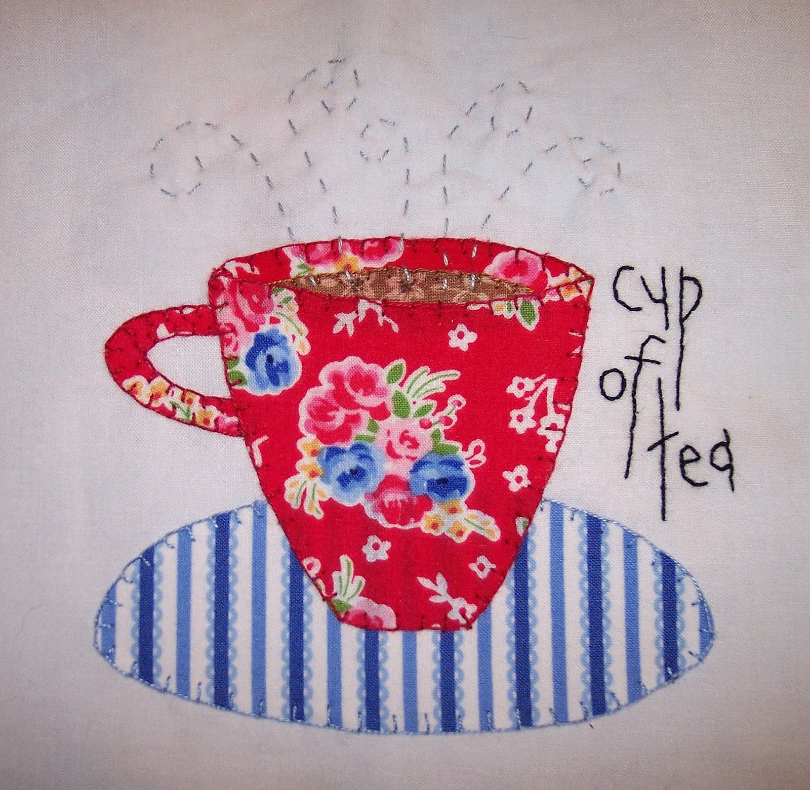 I've been working on the "My Favorite Things" quilt off and on since I last posted about it here. I managed to get all the applique/stitchery blocks for the first row done.